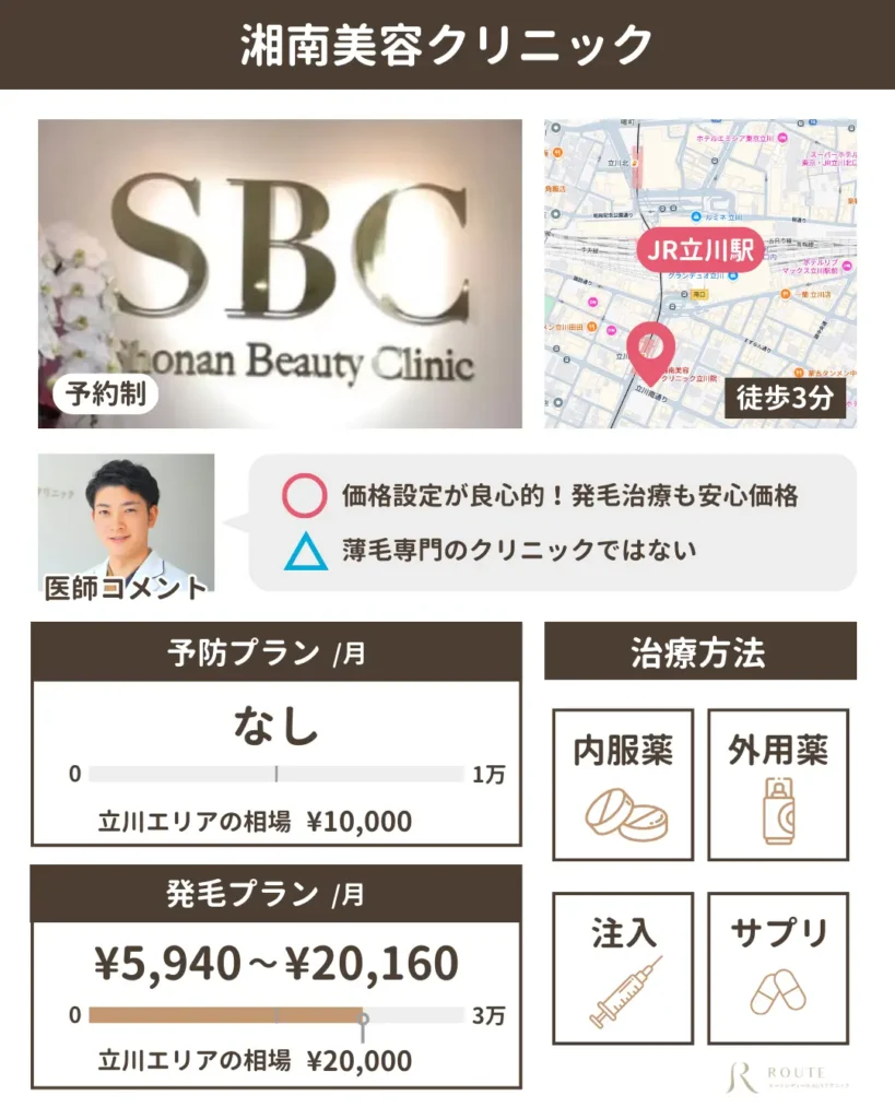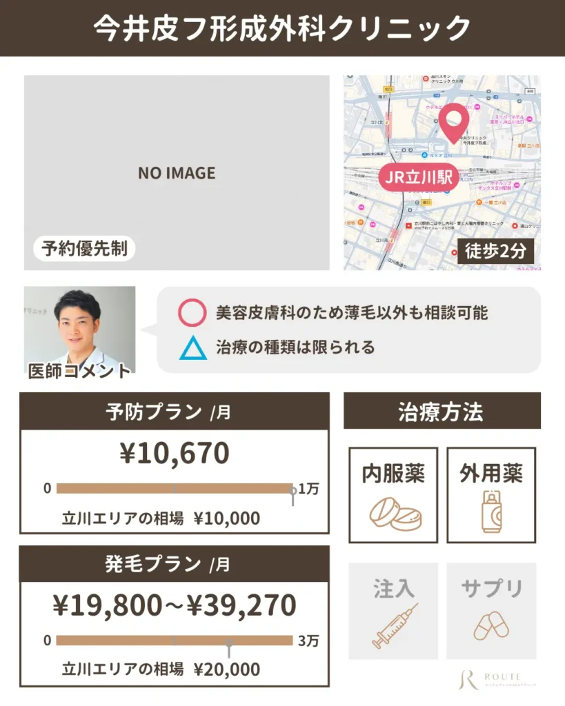 立川で女性の薄毛治療を検討している方へ。ここでは、医師の私が実際に調べたり感じたりした中で、「ここなら安心しておすすめできる」と思ったクリニックをいくつかご紹介します。